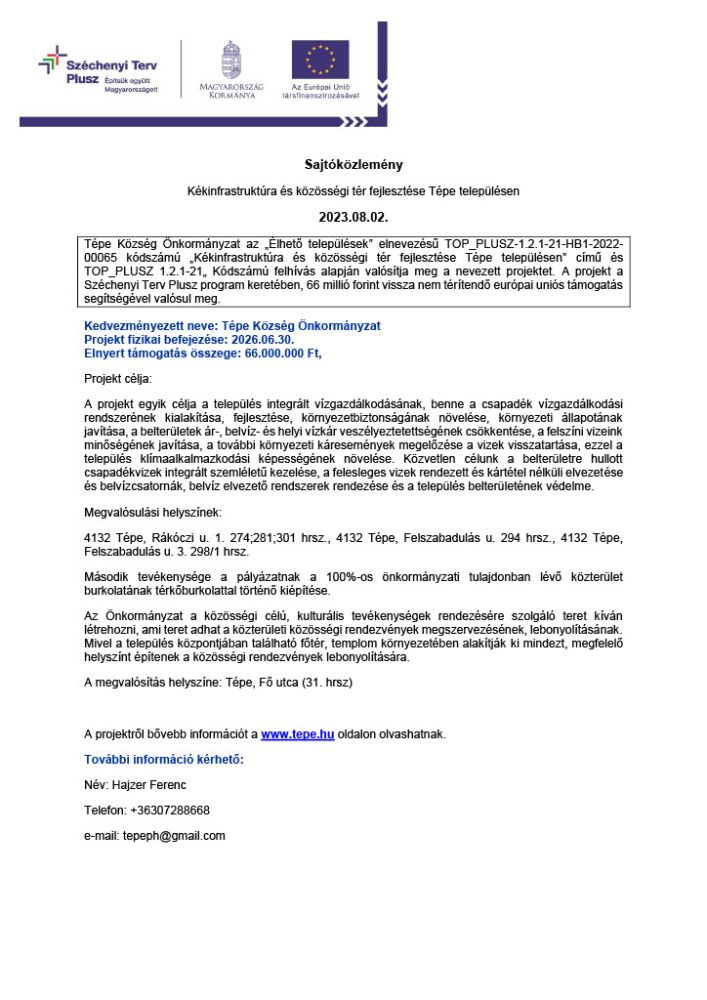 > Tépe Község Településrendezési eszközök meghatározott területre vonatkozó 2022. évi M2.-jelű módosítása