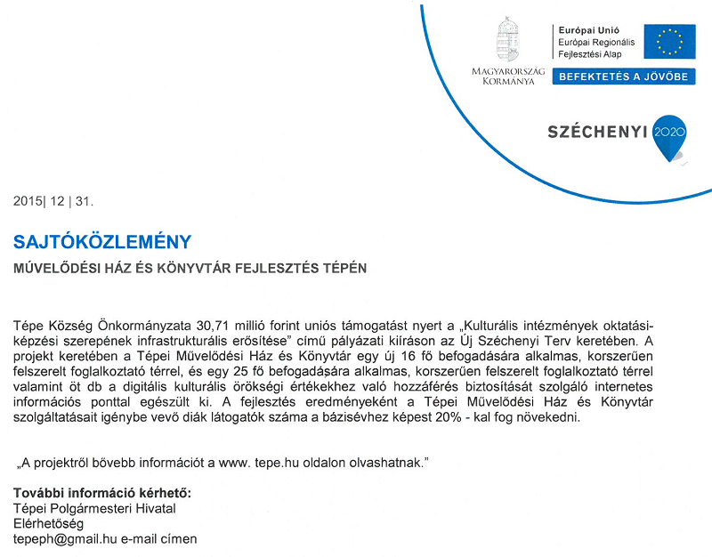 > Művelődési ház és Könyvtár fejlesztés Tépén